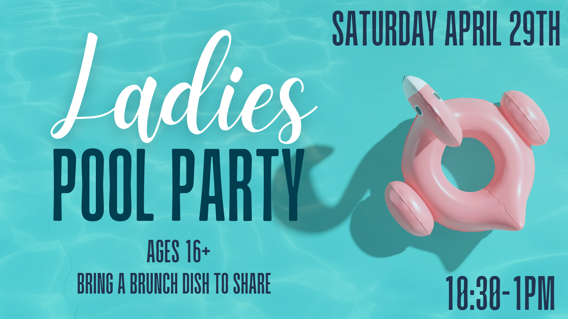 Are you ready for some fun in the sun? April 29th, 10:30 am-1 pm will be our Ladies’ Pool Party. We invite all ladies ages 16+ to join us!